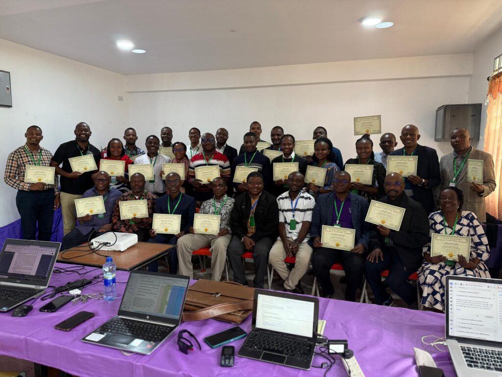 CLI Provided training for pastors and educators in Arusha, Tanzania, from May 7 to 9, 2025. Using the CLI-Logos Software Library, CLI instructors Nack Imatha and Moses Emena taught attendees how to conduct Inductive Bible Study and develop Expository Sermons. Each participant received the Christian Leadership Institute Digital Library, along with three days of training and lunch each day, at no cost. Thirty-nine participants received a certificate of completion—see picture below.